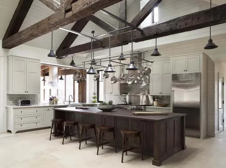 A neutral color palette sets the stage for a farmhouse kitchen. Soft whites, creams, and grays create a serene backdrop, allowing your rustic elements to shine. Use these colors on your walls, cabinetry, and even your backsplash. For a bit of contrast, consider darker hues for your island or lower cabinets.
